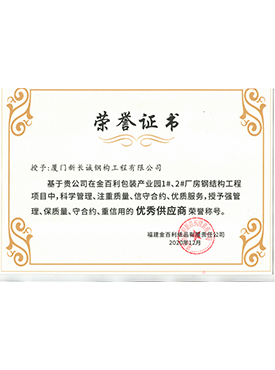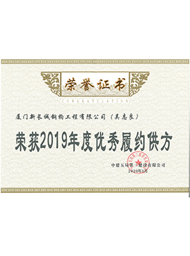 • 廈門新長(zhǎng)誠(chéng)2019年度優(yōu)秀履約供方榮譽(yù)證書