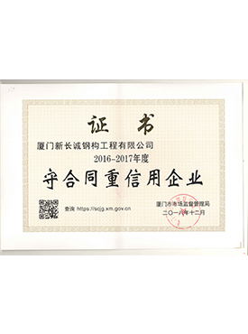 • 廈門新長(zhǎng)誠(chéng)鋼構(gòu)工程有限公司守合同重信用企業(yè)2016-2017年度