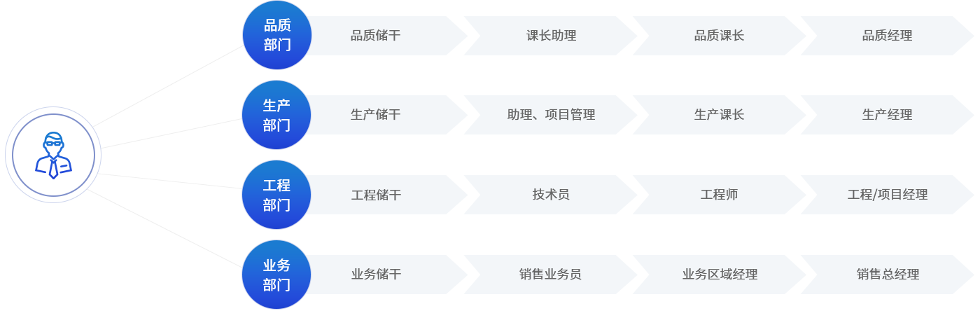 我們?yōu)閱T工設(shè)計清晰、明確和公平的職業(yè)發(fā)展通道,并與員工培訓(xùn)、績效管理相結(jié)合,